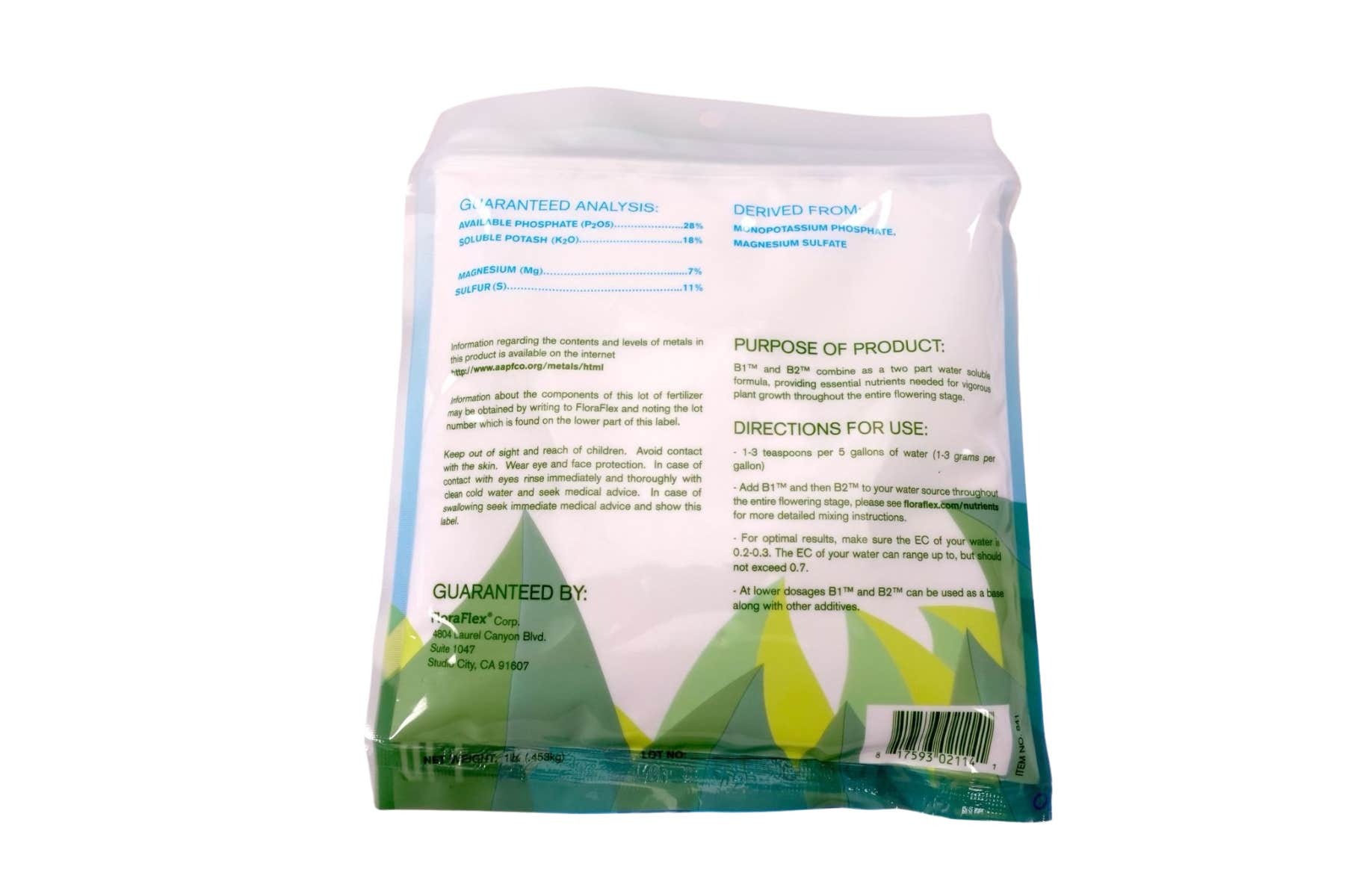 FloraFlex® is proud to introduce B2 Bloom/Flower - Part 2 , the second part of the innovative two-part powder nutrient system for the flowering phase. This advanced formula is designed to provide your plants with the essential nutrients they need during the flowering phase. Together with B1 Bloom/Flower - Part 1, B2 ensures a perfect balance, leading to strong and healthy flowers.